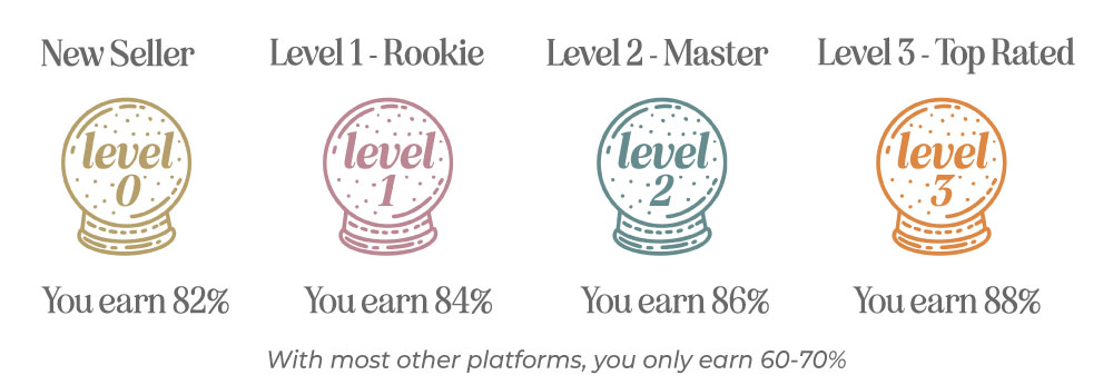 Competitive pay rates: Divinaty.com offers competitive pay rates to tarot readers or psychics. Advisors can earn up to 88 % of their session fees, which is much higher than many other psychic reading platforms (between 25% and 60 %). Check our commissions depending on your level below.